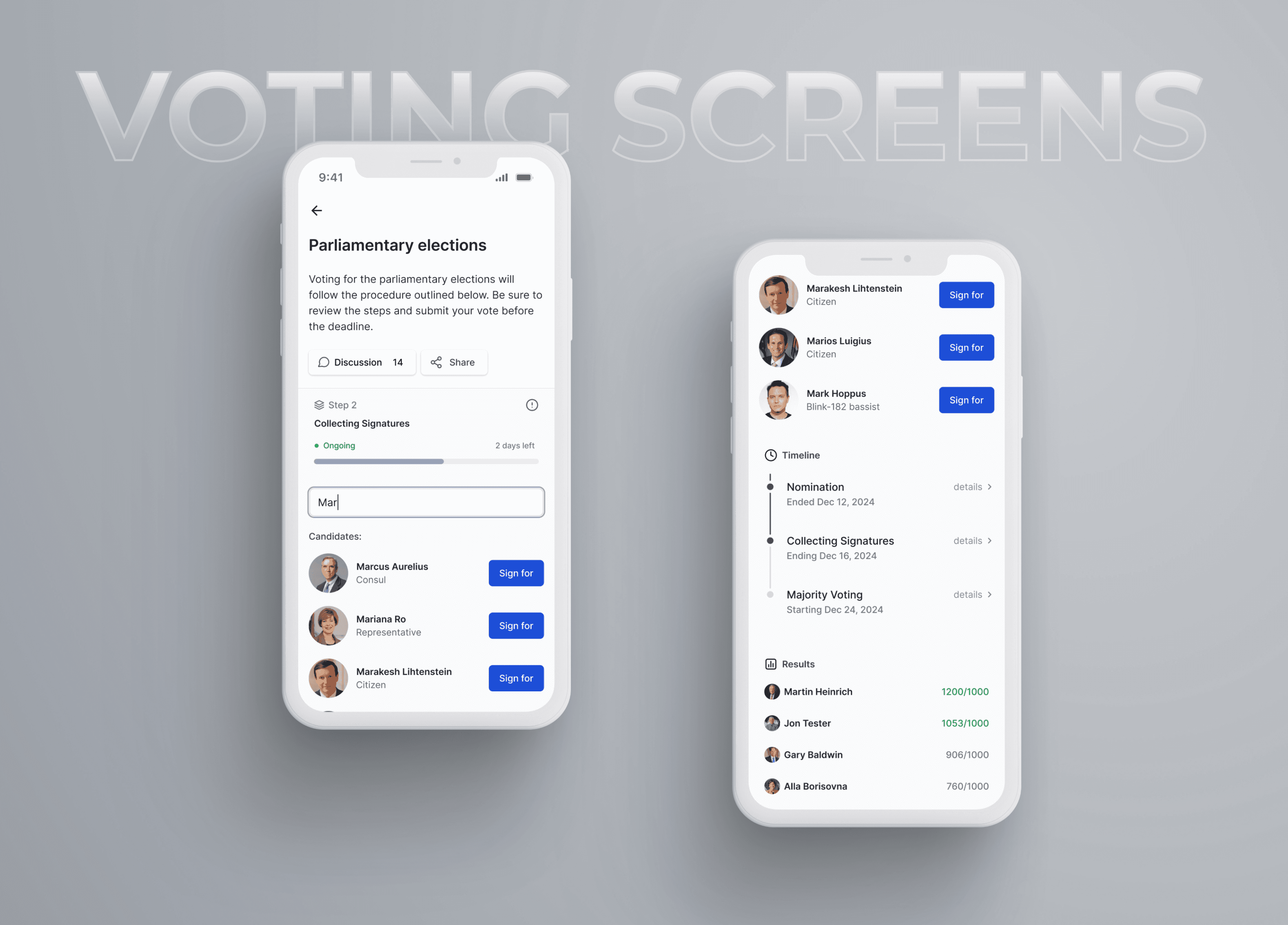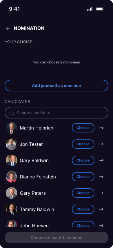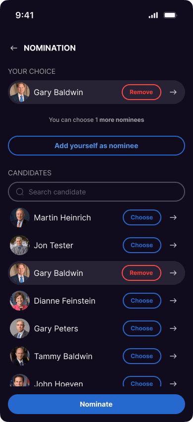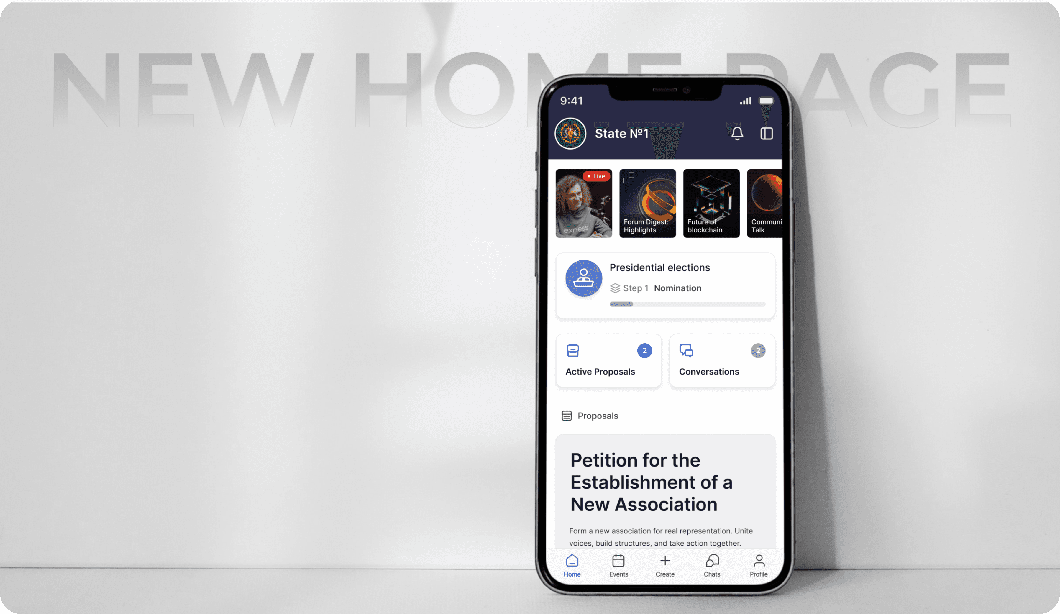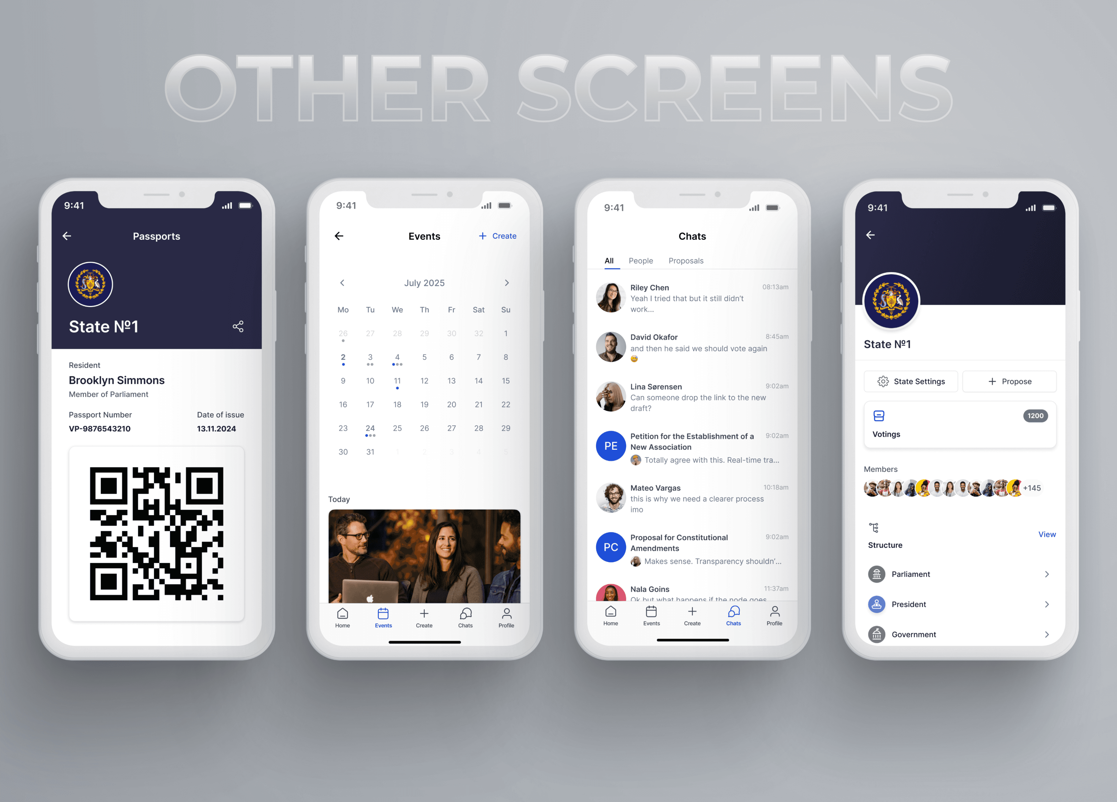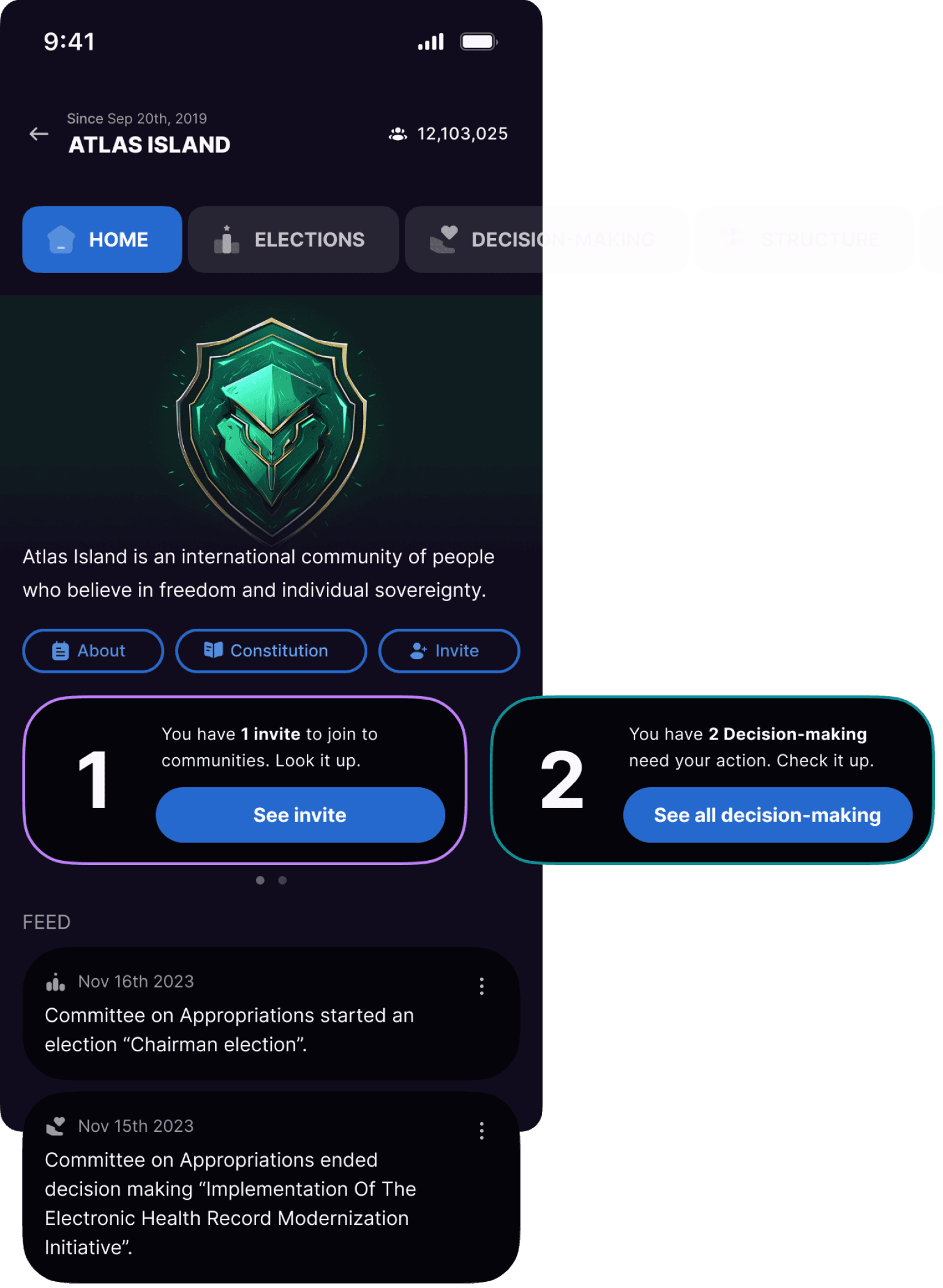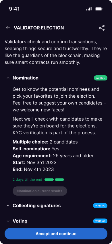 After deployment, a state comes to life in mobile applications, where users hold votes and elections, propose initiatives, and engage in other governance activities.